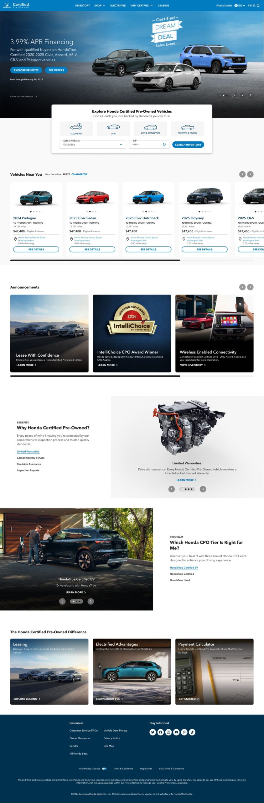 I led the redesign of the Honda Certified Pre-Owned website, turning an outdated experience into a modern and intuitive platform. The new design focuses on clarity and ease of use, with a clean interface, improved navigation, and refined visuals that help shoppers find their next used Honda with confidence.